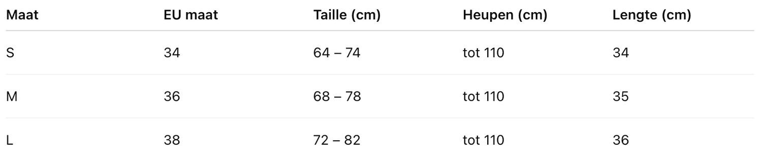 Tip voor klanten: Twijfel je tussen twee maten? Kies dan de grotere maat voor extra comfort. |